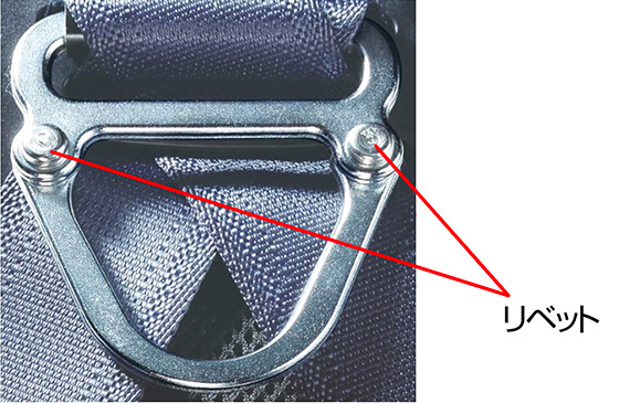 今般、藤井電工社製の「背中D環にリベット」があるフルハーネスと、TJMデザイン社製の「着脱フック」をフルハーネス接続部に使用しているランヤードを接続した墜落制止用器具において、フルハーネスの背中D環からランヤードが外れる危険性があることがわかりました。
